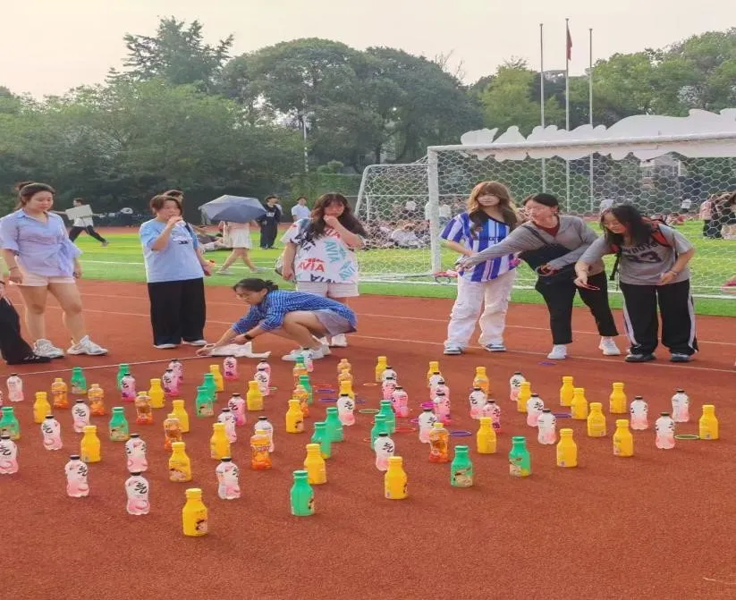 班级积分赛项目丰富多样,涵盖毛毛虫竞赛、一圈到底、拔河以及珠行万里。毛毛虫比赛中,大一同学们齐心协力,步伐一致地向前冲刺。他们紧密配合,如同在学习生活中相互支持、共同进步的伙伴。一圈到底项目考验着团队成员间的默契配合,大家手牵手、心连心,小小的圆圈在同学们之间快速传递,恰似思想的交流与碰撞。拔河场上,双方队员斗志昂扬,拼尽全力,那粗壮的绳索仿佛是一道道难题,同学们以顽强的毅力和坚定的信念去攻克。珠行万里则需要大家高度的细心与协作,一颗颗小小的珠子在同学们搭建的轨道上滚动,在精心呵护下不断积累与推进。