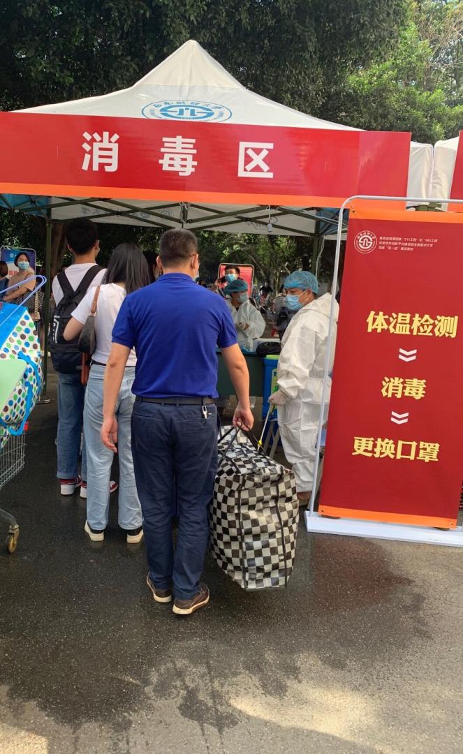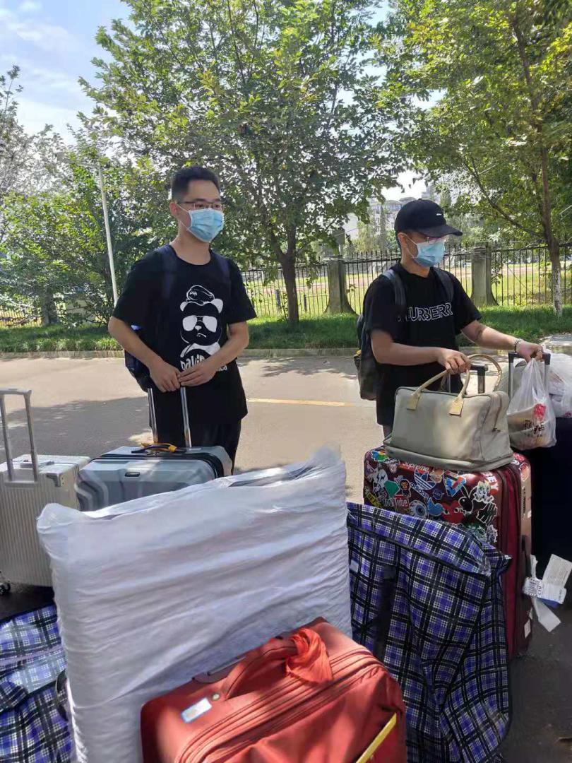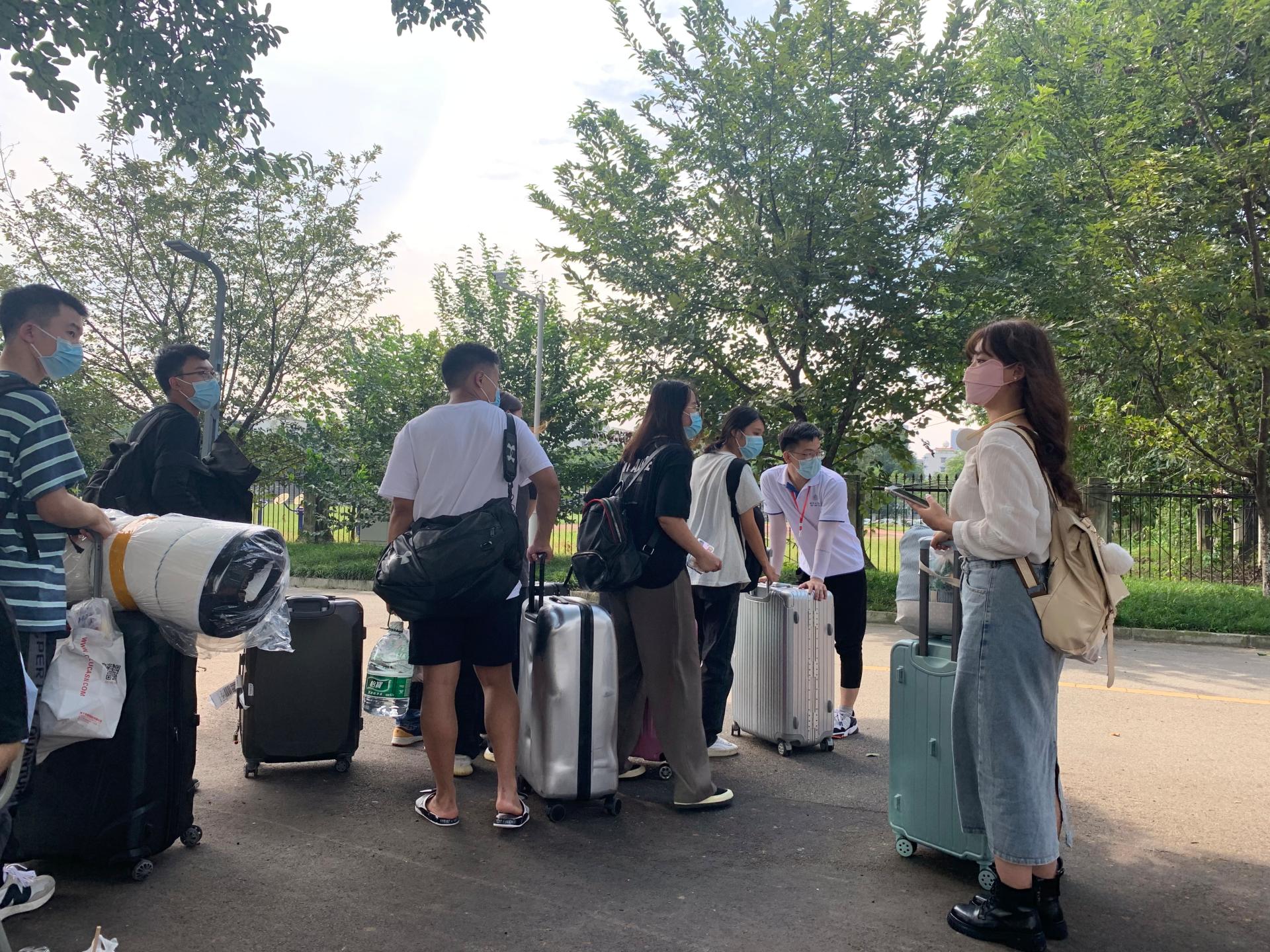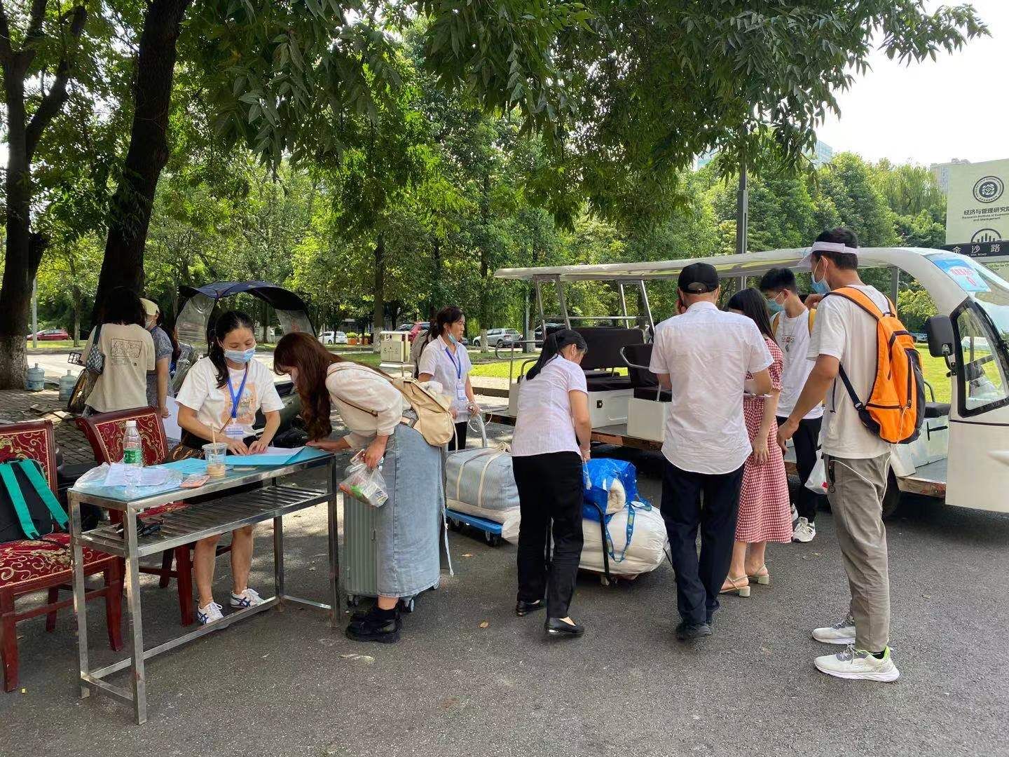 一句句叮咛,一声声嘱咐,热情迎接可爱的同学们。简化的报到程、训练有素的志愿服务实现了人员疏散、快速报到的目标。处理好了入学的各项事宜,同学们跟着学校提供的摆渡车来到宿舍。一辆辆满载新同学和行李箱的摆渡车、搬运车穿梭校园,帮助新同学们轻松抵达目的地。