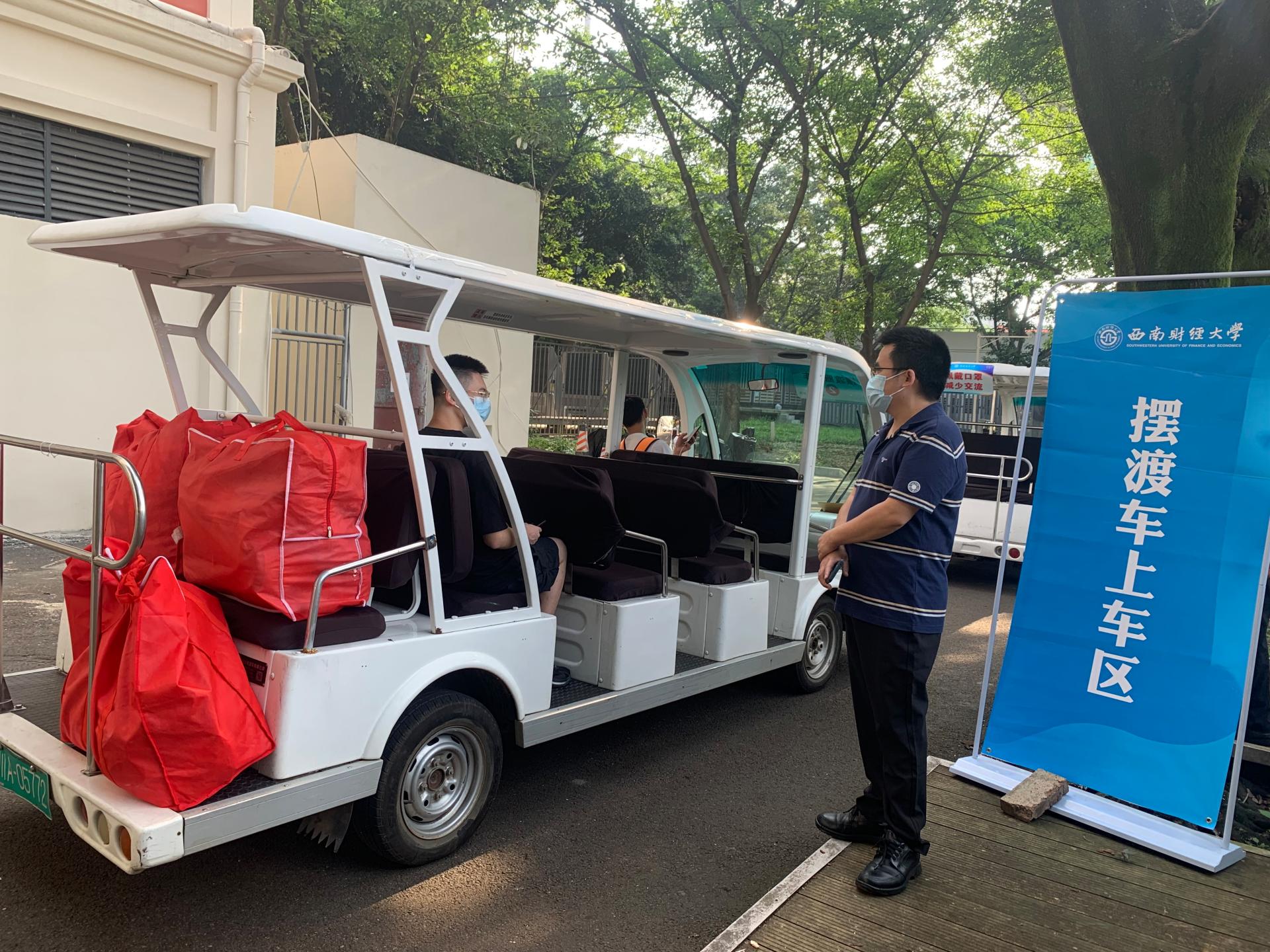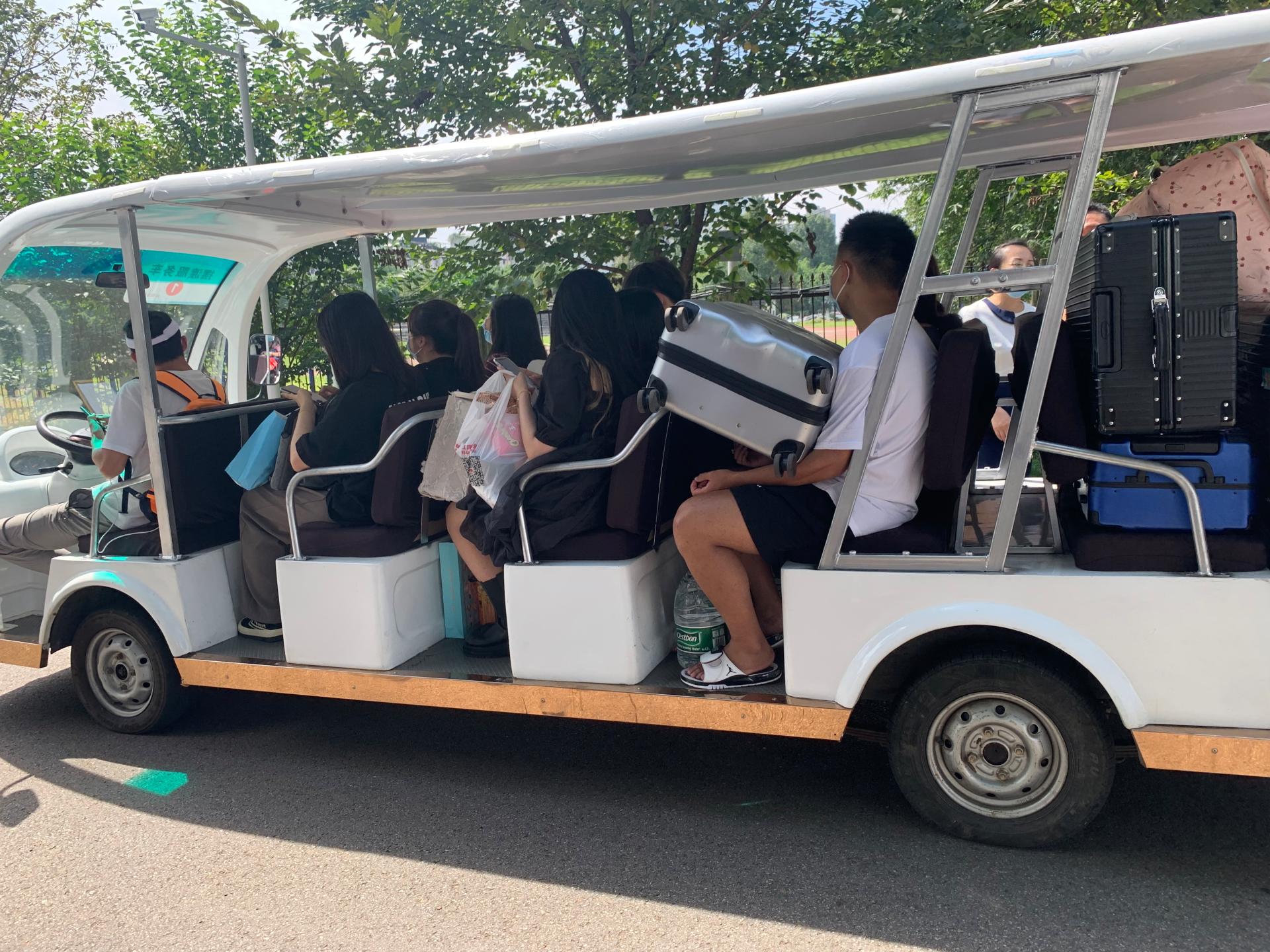 ▲坐上摆渡车去宿舍