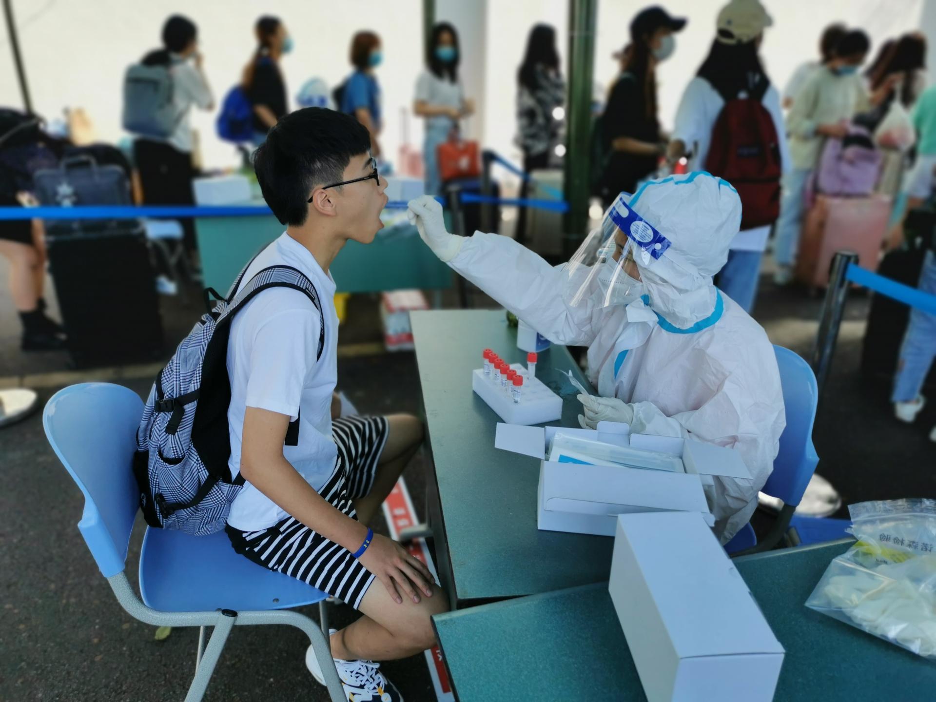 ▲进入核酸检测采样点