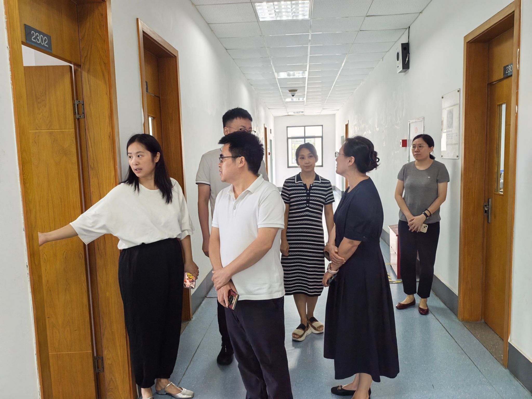 学院领导一行走访了光华楼裙楼的多个教室,细致检查了教师到岗、在线影院
