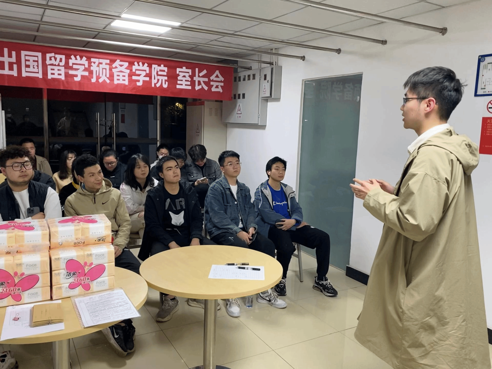 会副主席李耀坤同学作为优秀室长代表,他对入学近两年时间在宿舍生活和学习进行发言,如何安排好自己的作息时间、如何分工做好寝室内务,怎样有效把时间利用起来进行高效的学习等问题作分享。李同学对在座的各位同学给予鼓励和祝福,希望每位同学都能进入到自己理想的国外大学。